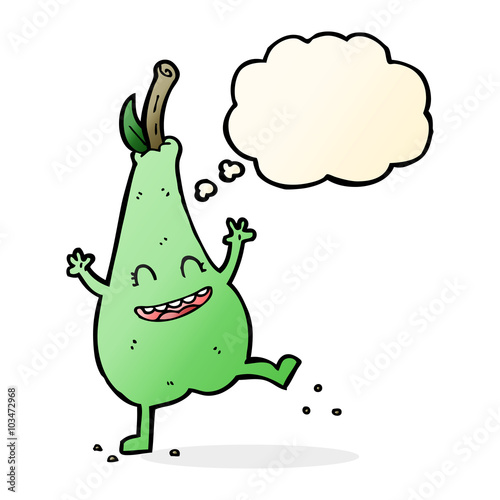 Obraz premium cartoon happy dancing pear with thought bubble