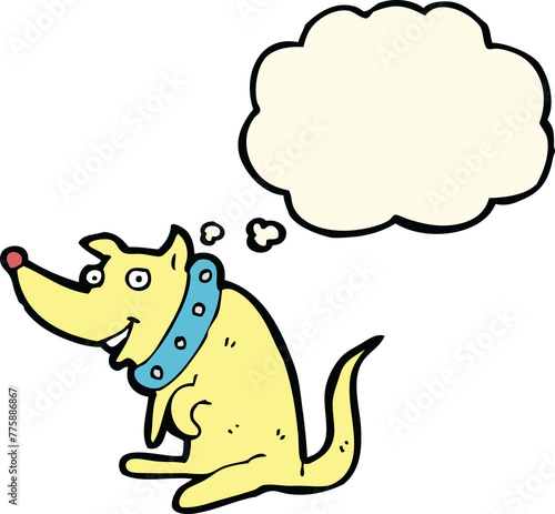 Fototapeta premium cartoon happy dog in big collar with thought bubble