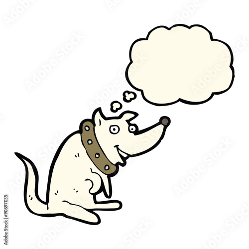Fototapeta premium cartoon happy dog in big collar with thought bubble