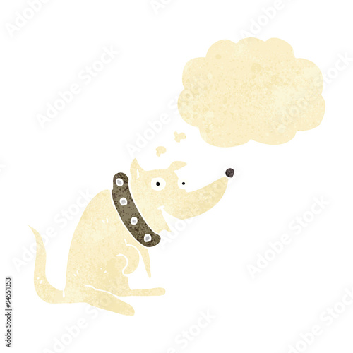 Fototapeta premium cartoon happy dog in big collar with thought bubble