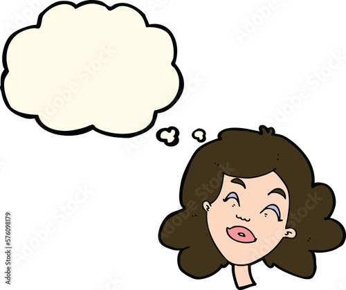 © lineartestpilot, Obraz premium cartoon happy female face with thought bubble