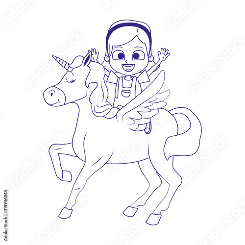 Fototapeta premium cartoon happy girl on unicorn icon