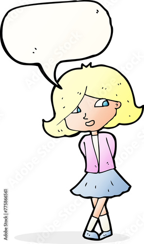 © lineartestpilot, Obraz premium cartoon happy girl with speech bubble