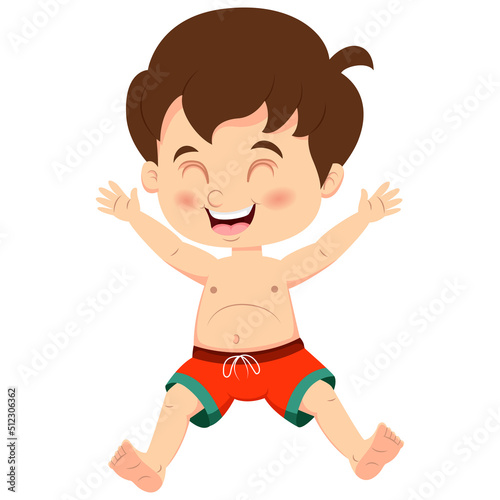© Mimosastudio, Obraz premium Cartoon happy little boy in a summer swimsuit