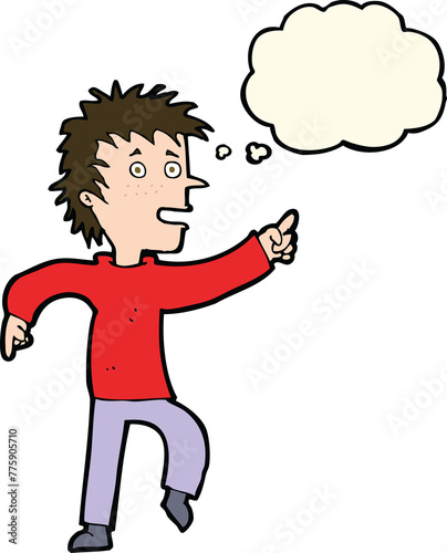 Fototapeta premium cartoon happy man pointing with thought bubble
