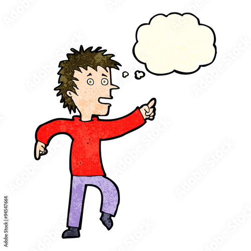 Fototapeta premium cartoon happy man pointing with thought bubble