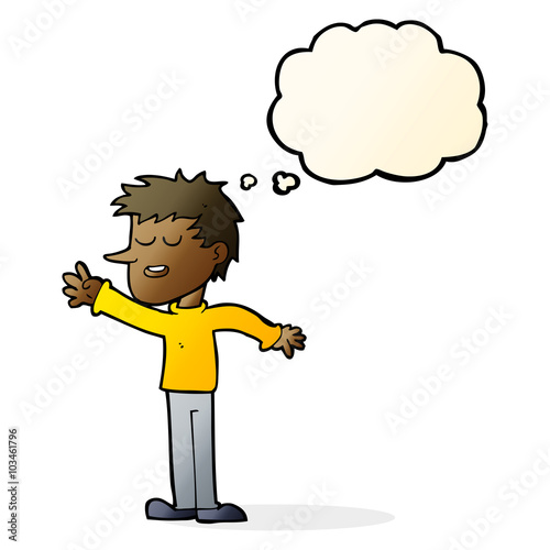 Fototapeta premium cartoon happy man reaching with thought bubble
