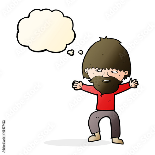 Fototapeta premium cartoon happy man with beard with thought bubble
