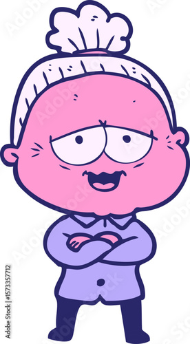 © lineartestpilot, Obraz premium cartoon happy old lady in bright neon color