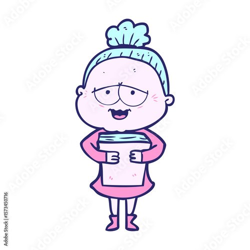 © lineartestpilot, Obraz premium cartoon happy old lady in bright neon color