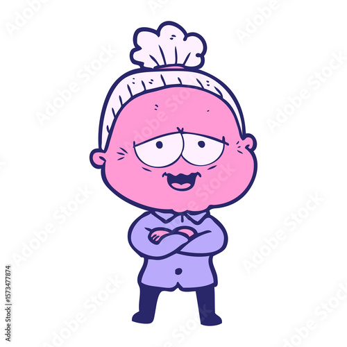 © lineartestpilot, Obraz premium cartoon happy old lady in bright neon color