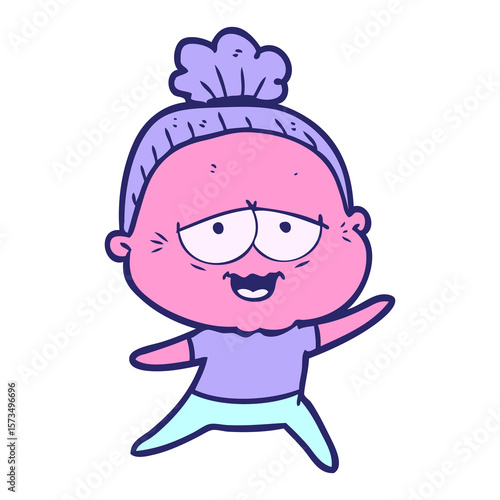 © lineartestpilot, Obraz premium cartoon happy old lady in bright neon color