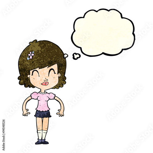 Obraz premium cartoon happy pretty woman with thought bubble