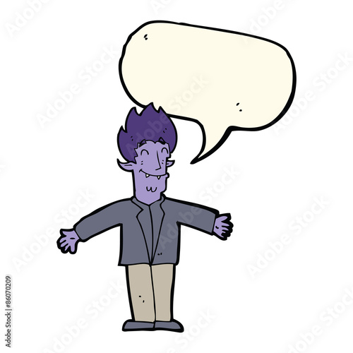 Fototapeta premium cartoon happy vampire with speech bubble