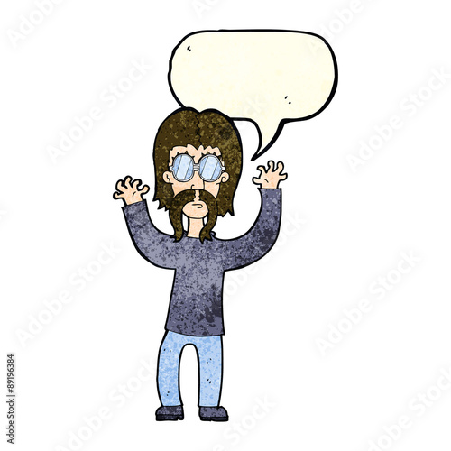 Fototapeta premium cartoon hippie man waving arms with speech bubble