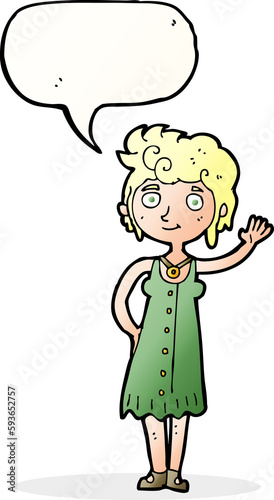 © lineartestpilot, Obraz premium cartoon hippie woman waving with speech bubble
