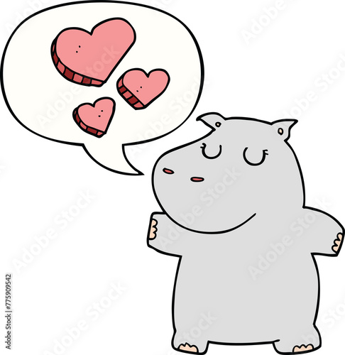 © lineartestpilot, Naklejka premium cartoon hippo in love with speech bubble