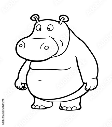 © Dav_782, Fototapeta premium cartoon hippopotamus in black and white style for coloring. Vector illustration
