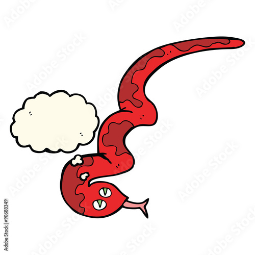 Obraz premium cartoon hissing snake with thought bubble