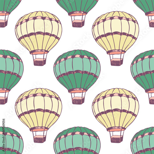 Obraz premium Cartoon hot air balloons illustration vector seamless patter.