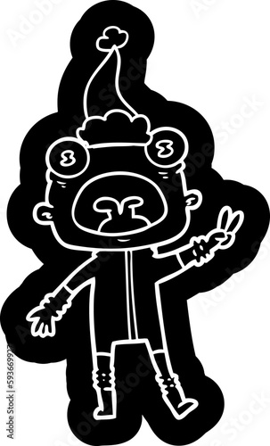 © lineartestpilot, Fototapeta premium cartoon icon of a weird alien waving wearing santa hat