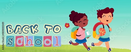 © Queen Dahe, Naklejka premium Cartoon illustration cute kids back to school.