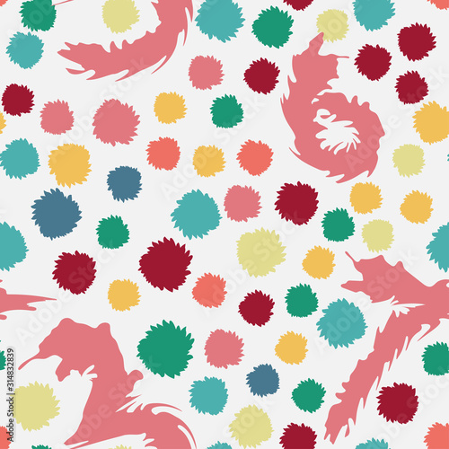 Obraz premium Cartoon illustration fluffy circles numeral multicolor seamless pattern