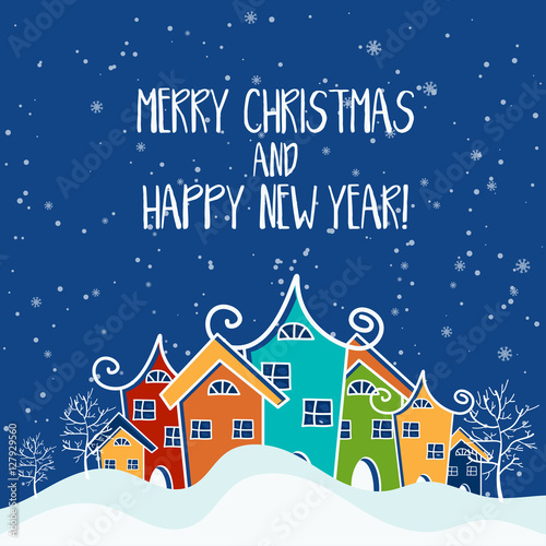 © UVAconcept, Fototapeta premium Cartoon illustration for holiday theme with house on winter back