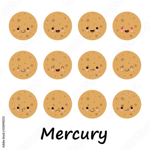 © YuliaR, Obraz premium Cartoon Illustration Mercury Emotion. Vector Solar System object