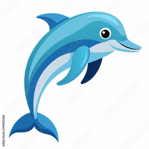 © Rizaldi, Fototapeta premium Cartoon Illustration of a Blue Dolphin Leaping
