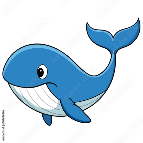 Fototapeta premium Cartoon Illustration of a Blue Whale with a Happy Expression