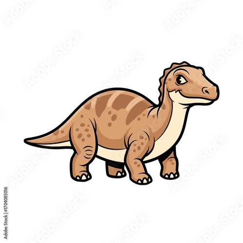 © Rahmat, Fototapeta premium Cartoon illustration of a brown dinosaur with a long neck and a small head, standing.