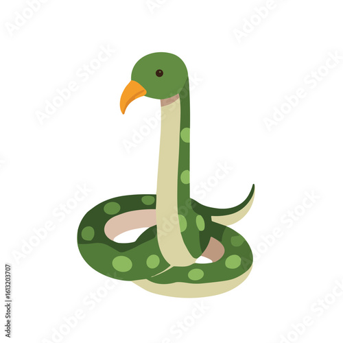 © oki, Fototapeta premium Cartoon illustration of a coiled, green snake with orange beak.