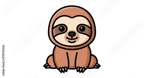 © Anisa, Naklejka premium Cartoon illustration of a cute, brown sloth sitting upright with a smiling expression.