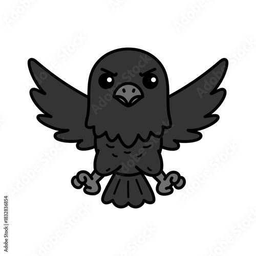 © yellowline, Obraz premium Cartoon Illustration of a Cute Crow with Open Wings