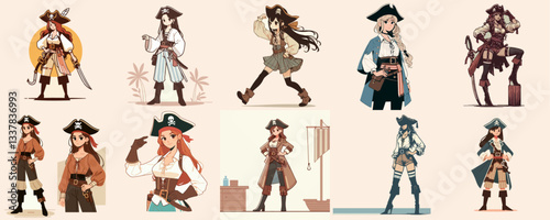 © Izzul, Naklejka premium cartoon illustration of a girl pirate captain