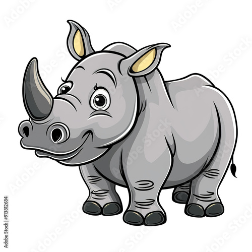© Mutimul, Fototapeta premium Cartoon illustration of a gray rhinoceros with a large horn, generative ai image