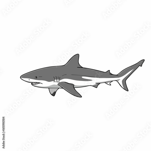 Naklejka premium Cartoon Illustration of a Great White Shark Swimming Gracefully in the Ocean