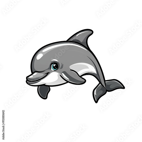 © Mutimul, Obraz premium Cartoon Illustration of a Grey Dolphin with a White Stripe, generative ai image