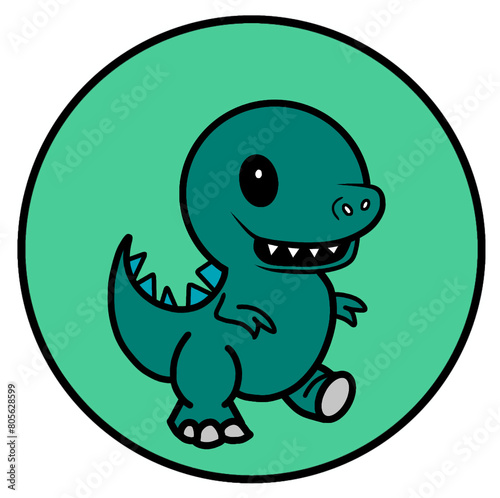 © ZiiStd.ID, Naklejka premium cartoon illustration of a happy dinosaur in green with a T-rex theme