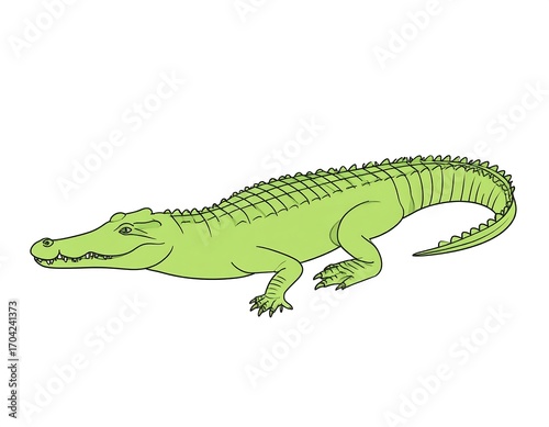 © Alisha, Obraz premium Cartoon illustration of a light green crocodile
