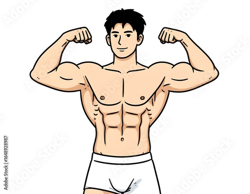 © tisu, Fototapeta premium Cartoon illustration of a muscular man flexing