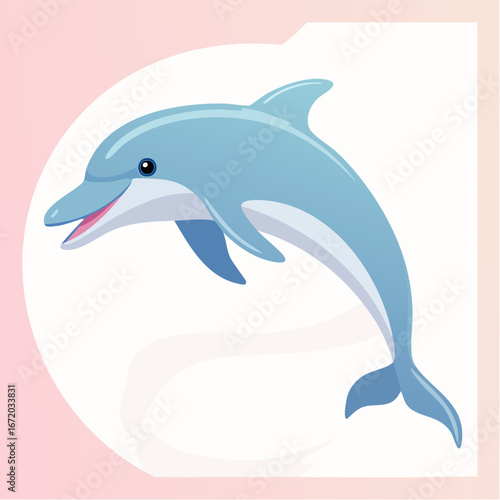 Fototapeta premium Cartoon illustration of a playful dolphin leaping gracefully.