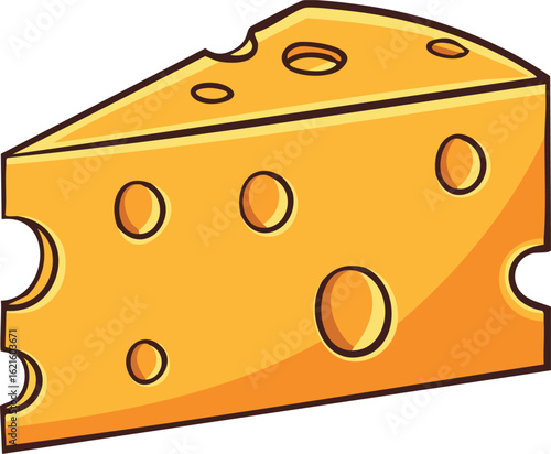 © faisalaladabi, Fototapeta premium Cartoon illustration of a triangular cheese slice with holes, on a white background.