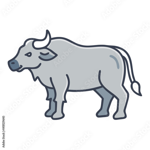 © Xihan, Fototapeta premium Cartoon illustration of a water buffalo on black background