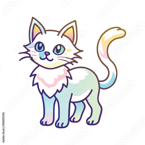 © Design Adelsa, Fototapeta premium Cartoon Illustration of a White and Pastel Cat with Blue Eyes