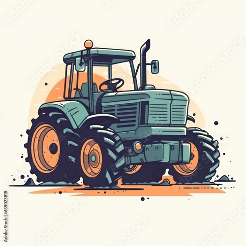 © Agustin, Obraz premium Cartoon illustration of a Yellow Tractor. Generative AI.