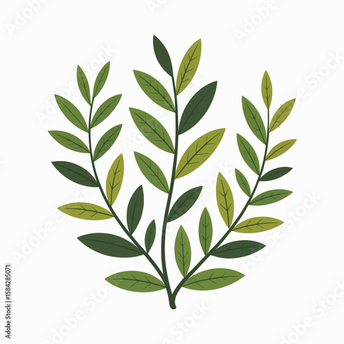 © Asadullah, Fototapeta premium Cartoon illustration of green leaves and branches on a white background