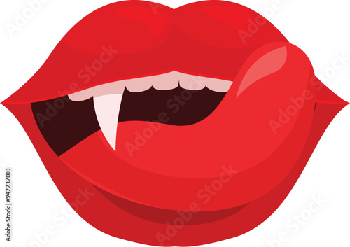 © nsit0108, Obraz premium Cartoon illustration of red lips with fangs licking lips