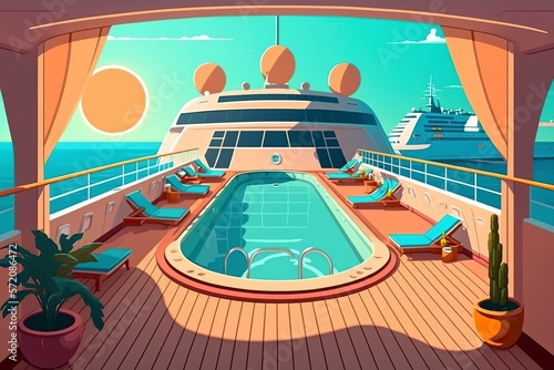 Fototapeta premium cartoon illustration, swimming pool on a cruise ship, ai generative